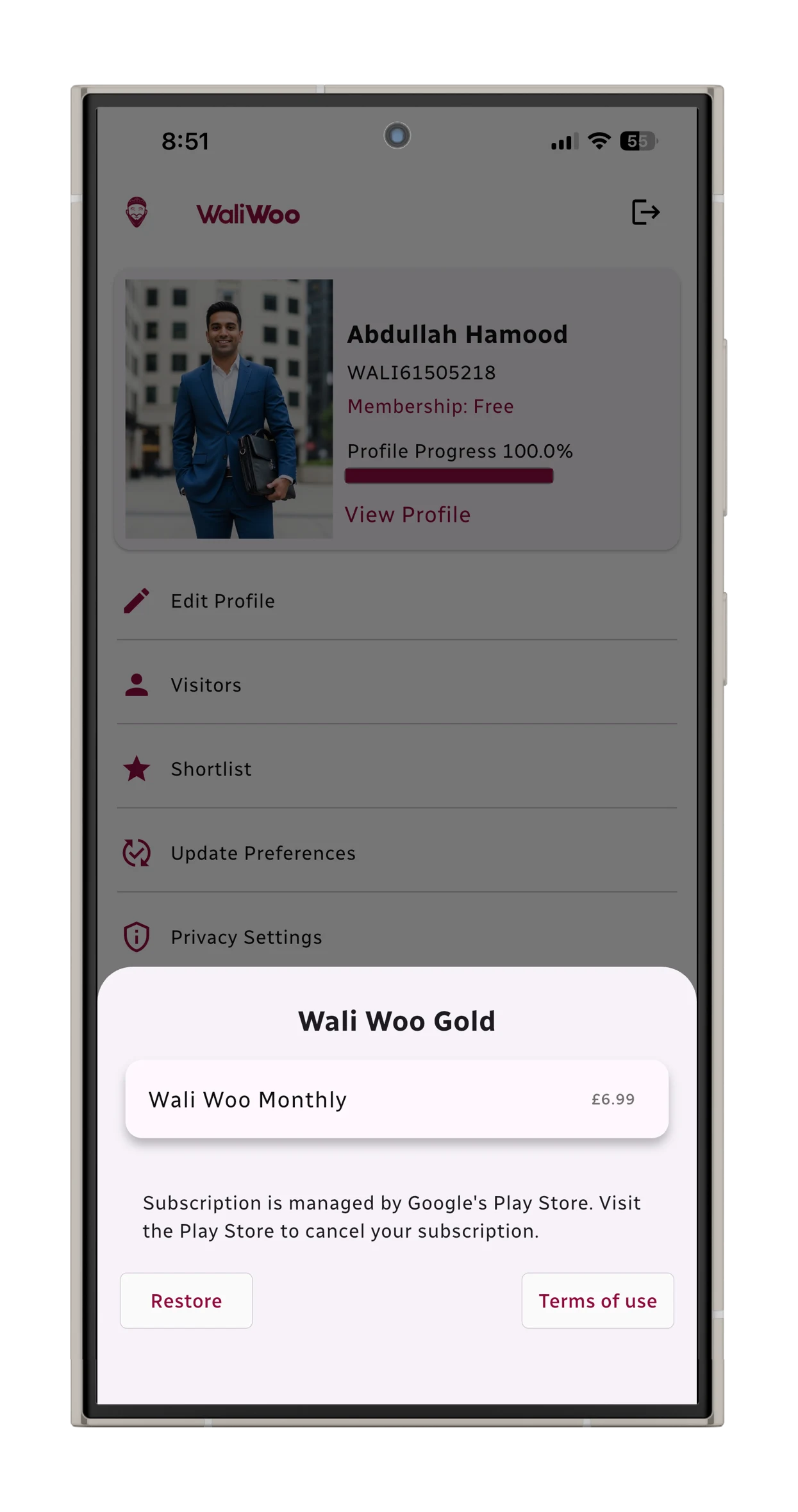 As a groom, or the parent of one, create a free profile with a few simple taps and search 100s of matches! But why not go for Gold?! Use Wali Woo to its full potential; unlimited connections, instant messaging, secure access to galleries and a whole lot more! For only £6.99 per month (approx. $9) – no commitment, cancel any time. Marriage, done right.