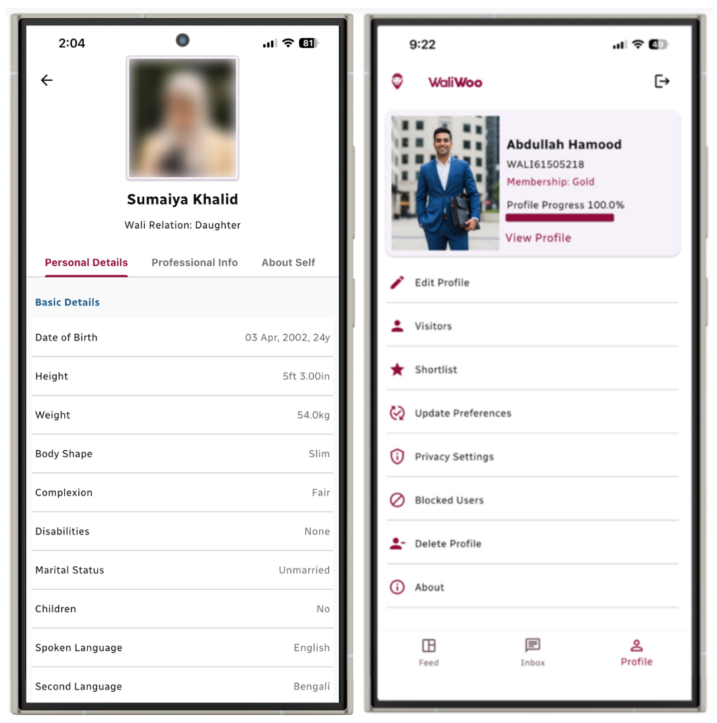 Wali Woo is the only parent-led matrimonial platform for Muslims worldwide. The trusted and straightforward way for walis, grooms or their parents to connect & find the right match without compromising faith. No stress, no fuss – just swipe, connect, and start the journey to a beautiful marriage. Make it right, from the start – it’s all at your fingertips!